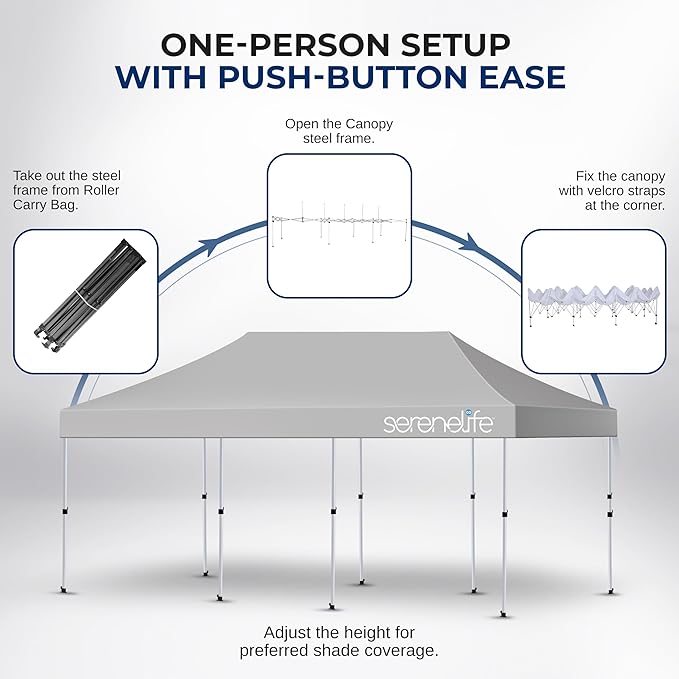 SereneLife 10x30 Ft. Pop Up Commercial Tent – Large Instant Pop-Up Canopy, Heavy Duty Waterproof Polyester Shelter with Wheels, Sandbags, Stakes & Ropes, Ideal for Parties, Events, & Gatherings