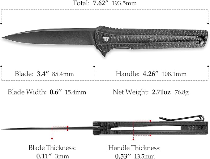 - EDC Size-About 2.7oz,3.4'' blade and 4.26'' while close.