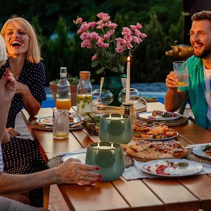 1 Pack Soy Wax Green Ceramic 2-Wick Outdoor Citronella Candles– Long Burning Scented Candle for Home Decor, Relaxation, Gifts & All Occasions