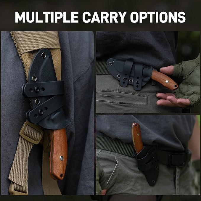 - Ergonomic Wood Handle: The handle of this fixed blade knife is crafted from wood material, combined with a Full Tang construction and ergonomic design, ensuring a comfortable and secure grip. This feature provides a pleasant user experience for long-term usage