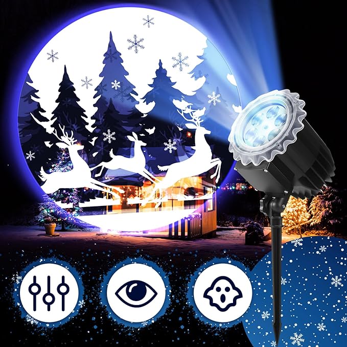 - 360 Degree Festive Charm: this Christmas landscape decorative lighting has dynamic patterns; With the ability to rotate 65 degrees, it casts its enchanting light in assorted direction, splashing your surroundings with dynamic, moving patterns