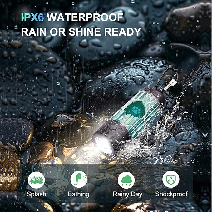 - 【IPX6 Waterproof Dog Flashlight】Works in Rain or Storm. Our IPX6 waterproof dog poop dispenser protects against heavy rain and accidental drops. Enjoy Night Waliking, Hiking, Camping in any Weather with the leash poop bag holder !