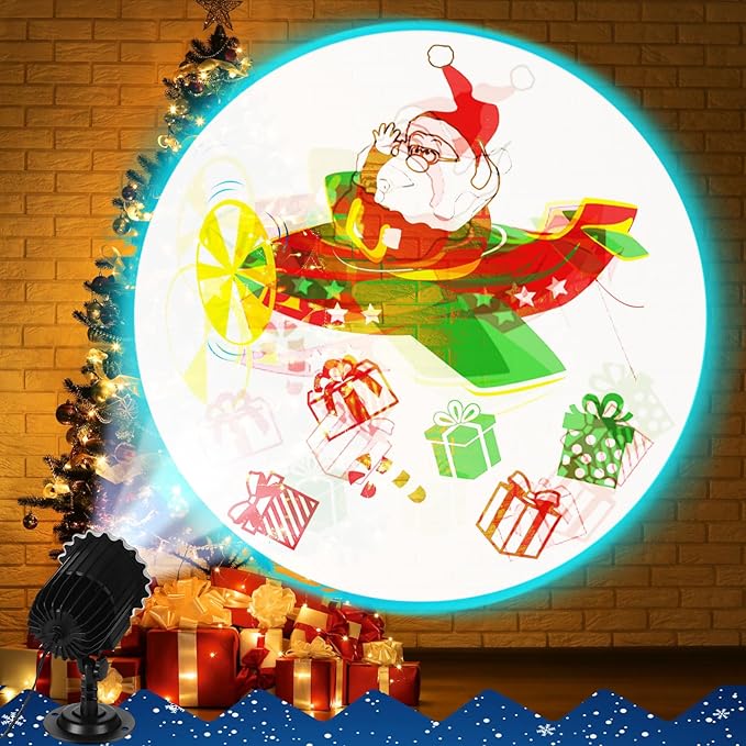 - Holiday Supplies: with an active and lively Christmas themed pattern, such as Santa in airplane; In our projector, there is only one film sheet and a projector lamp (with 4 patterns) is inserted; The film sheet can be replaced; You can also prepare different styles of film by yourself, this Christmas holiday projector brings the holiday essence to your home; Its vibrant and colorful film allows you to create an enchanting environment