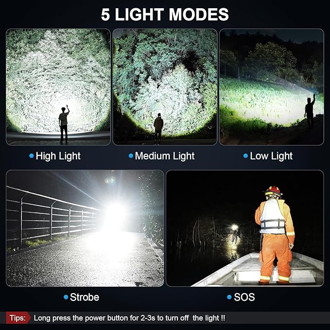 - Special Feature : Adjustable Beam Light & Long Range, High Lumens Flashlight & Adjustable 5 Light Modes, USB~C Fast Rechargeable & 15H Long Lasting, Weatherproof & Strong Resistant Adjustable Beam Light & Long Range, High Lumens Flashlight & Adjustable 5 Light Modes, USB~C Fast Rechargeable & 15H Long Lasting, Weatherproof & Stro… See more