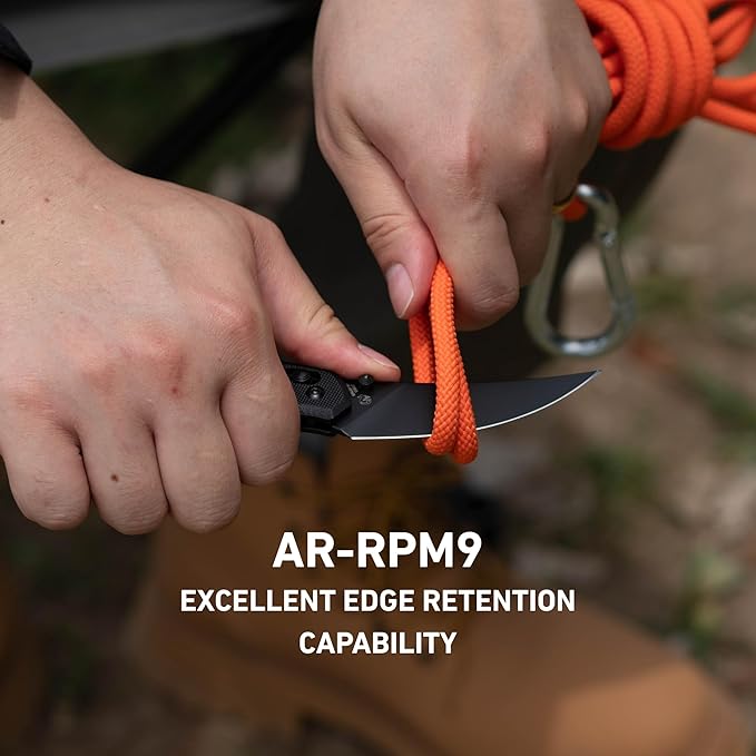 - Durable AR-RPM9 Steel Blade: The Nanner pocket knife is crafted with durable AR-RPM9 steel, which is perfect for daily use, with high corrosion resistance and exceptional edge retention. The non-reflective PVD coating ensures that this knife will keep corrosion at bay even in the harshest conditions