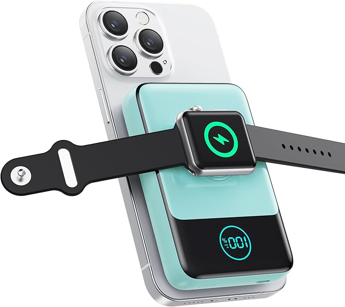 - 【Magnetic Wireless Portable Charger for Apple】This wireless magnetic portable charger compatible with MagSafe Magnetic case, iPhone 16/16Plus/16Pro Max/15/15 Plus/15 Pro/15 Pro Max/14/14 Plus/14 Pro/14 Pro Max/13/13mini/13Pro/13Pro Max/12/12mini/12Pro/12Pro Max, Apple Watch 10/9/8/7/6/5/4/3/2/1/SE 1/SE2/Ultra /Ultra 2 and Airpods 2/3/Pro/Pro 2. (Note: Please use Mag-Safe phone case or without case for wireless charging)