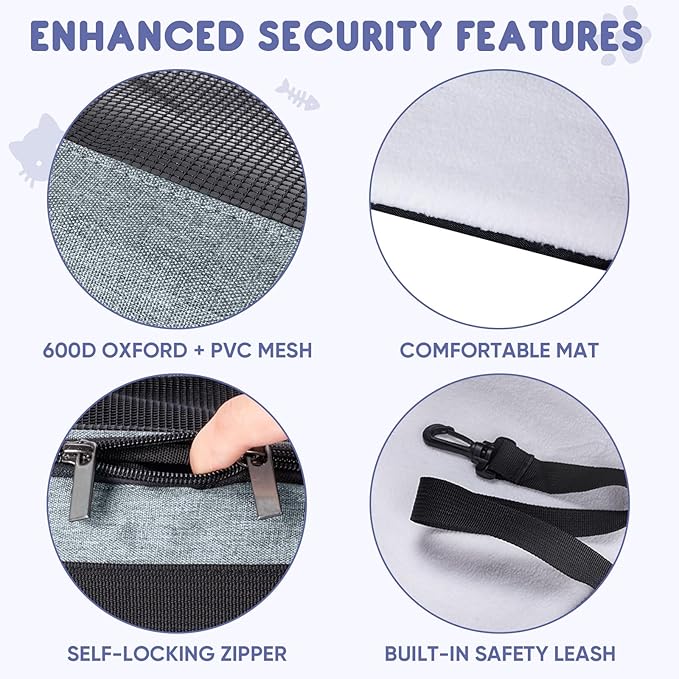 - Durability and Comfort: Made of 600D waterproof fabric and PVC mesh, this pet carrier for cat resists daily wear and scratches from pets; The integrated iron wire and rubber frame maintain its shape even when empty; While the 3mm fiberboard base offers stability, and a removable soft plush mat ensures a comfortable sleeping space for your pet during trips