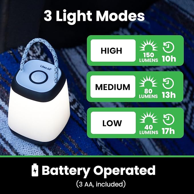 LitezAll Mini LED Camping Lantern with Rope Handle – 360° Light, 4 Modes, Battery Operated Portable Lantern for Kids, Outdoors, Emergencies, Sleepaway Camp, Hiking & Backyard Use