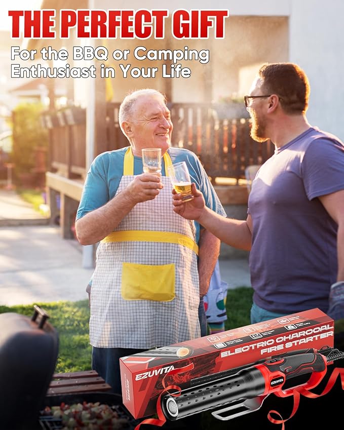 - Clean & Safe — No Lighter Fluid Needed:Our 1500W electric fire starter ignites charcoal or wood purely with high-heat air, eliminating the need for charcoal lighter fluid. Say goodbye to chemical odors on your food—cleaner, safer grilling every time