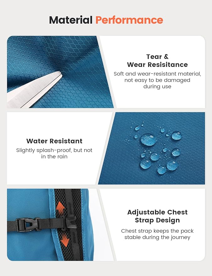 - ORGANIZED 16L DAYPACK: Suitable for long-term use, this packable backpack is made of abrasion-resistant nylon material, which can effectively resist the scratching of branches and stones, and the keys and other items placed in it are also safe, and all the seams are reinforced.