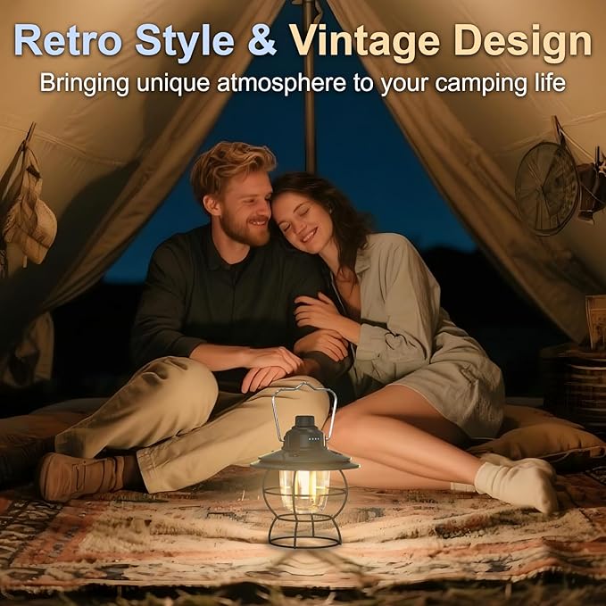 - 【Pleasant Bright & 3 Lighting Modes】 This vintage-inspired Lantern offers 10-600 lumens of brightness, providing 360-degree illumination for your campsite. It features three distinct lighting modes:white light, warm light and warm white light. Each mode allows you to create the perfect camping atmosphere, whether you need a warm, cozy glow or a bright clear light.