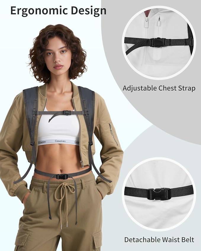 - 【Durable & Water-Resistant】This hiking bag uses water-repellent fabric to resist moisture and light splashes, keeping contents dry in dewy conditions or brief sprinkles. The top arc-shaped cover conceals the drawstring closure, adding a layer of protection. Built tough for outdoor use.