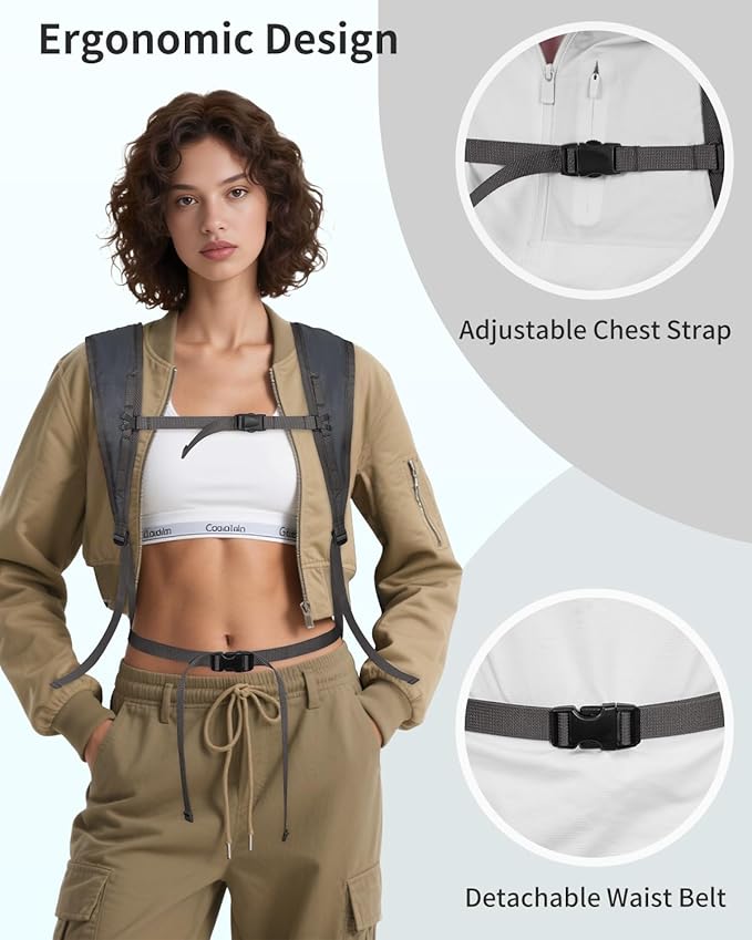 - 【Ergonomic Comfort】This hiking backpack evenly distributing weight to reduce strain, features an adjustable chest strap and detachable waist belt for a customized fit. Soft back material keeps you cool during long hikes.