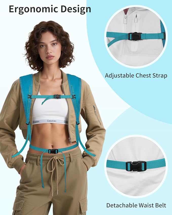 - 【Multi-Pocket Layout】This lightweight backpack boasts specialized pockets: drawstring water bottle side pockets, internal hydration bladder compartment, and trekking pole cords. Storage as needed, no clutter.