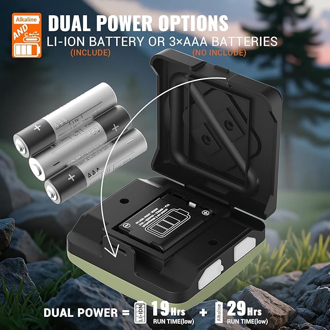 - This battery powered lantern offers flexible power choices—use the included rechargeable lithium-ion battery for up to 13 hours on Low mode, or switch to 3 AAA batteries (not included) for up to 24 hours of runtime. A reliable solution for emergency preparedness, power outages, or when you need extended lighting off the grid.