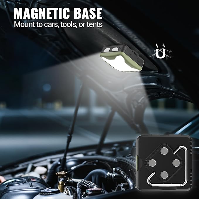 - Equipped with a strong magnetic base and a convenient carabiner hook, this lantern easily attaches to metal surfaces or hangs from tents, branches, or backpacks. Perfect for DIY repairs, roadside emergencies, or hands-free task lighting in tricky spots.