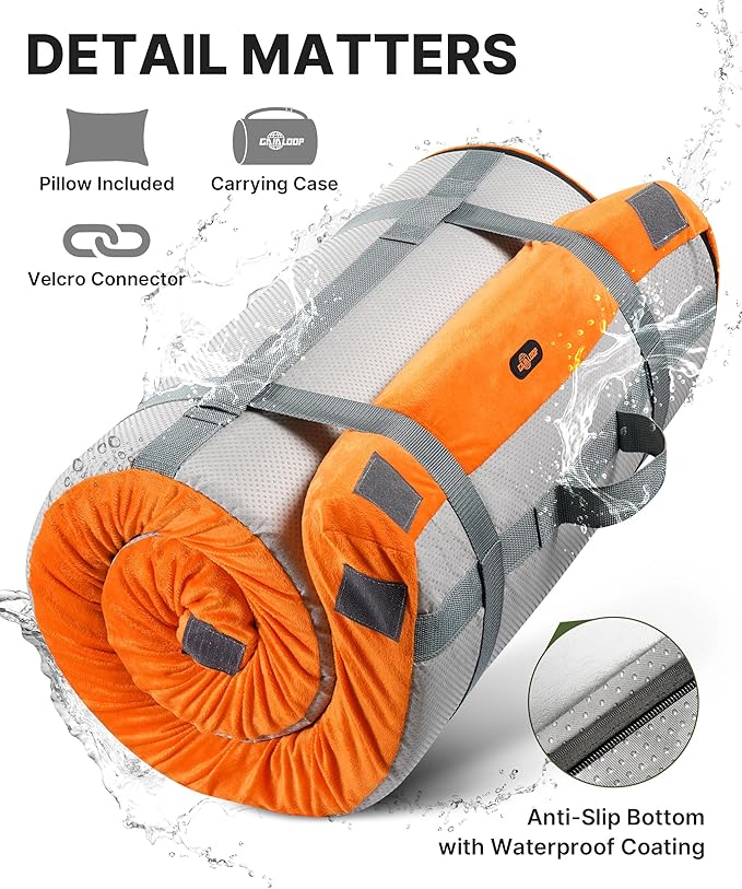 - 【Waterproof & Washable Cover】The velvet like plush fabric cover is removable and washable. The inner side of the top and bottom covers has waterproof coating to protect the foam from rain, dew, and wet ground. Wash the cover at a reasonable frequency can keep the pad clean as well as increase its lifespan.