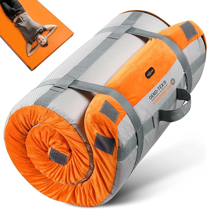 - 【Outdoor Uses: Camping/Road Trips】It can be used as a portable travel mattress, camping bed roll, a temporary bed in tent camping, car camping, and road trips(for SUV/RV/Van/Truck/Camper). Way more comfortable and easier to use than air mattresses. It also can be used to soften up a cot or a couch. It comes with a sturdy carrying case with straps, can be rolled up nicely for storage.【Not for long-distance backpacking/hiking.】