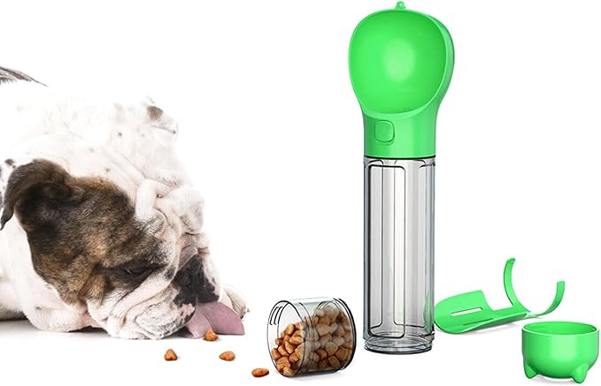 - All-in-One Pet Travel Cup: This 4-in-1 multifunctional water bottle combines a large water cup (O-shaped design matches your dog’s mouth for easy, comfy drinking), dog food container, waste bag dispenser, and built-in bowl. Perfect for walks, hiking, travel, and outdoor adventures—everything your dog needs in one compact design.