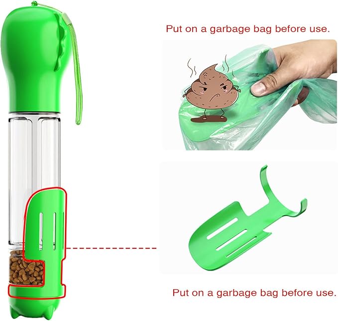 - Easy to Clean: Each part detaches for separate use and easy cleaning. The base holds garbage bags, the mid-section stores food, and the back panel includes a hidden poop scoop to keep your surroundings clean.