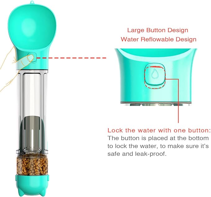 - One-Hand Operation & Leak-Proof Button: DoqiPaw Pets dog water bottle is designed to be easily used with just one hand. The wide push-button lets you dispense water in seconds with one hand, while the remaining water can flow back into the bottle. A silicone sealing ring and safety lock ensure no leaks in your bag or car.