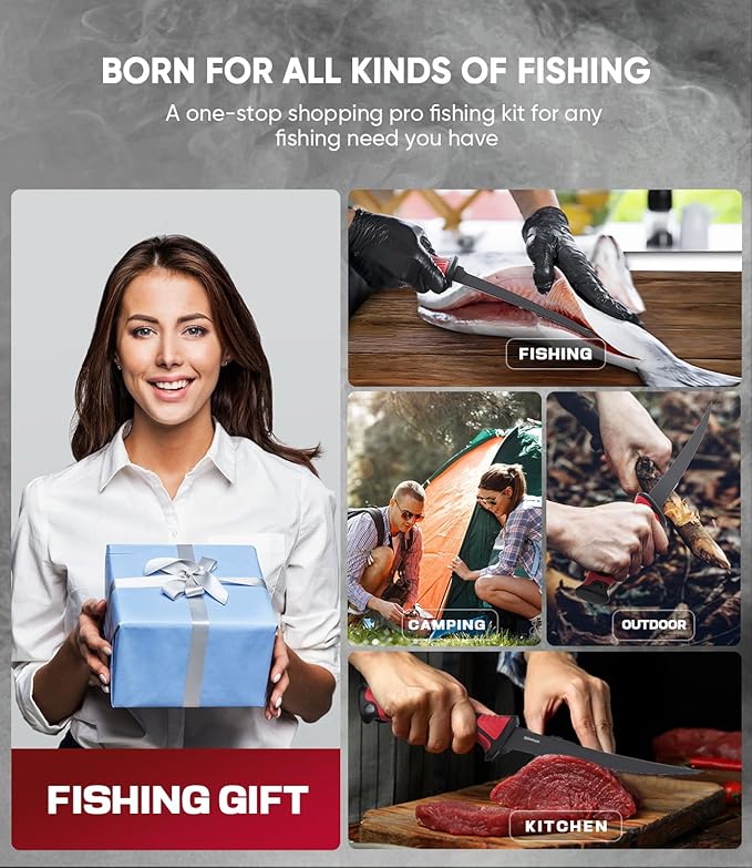 - 【Safe&Ergonomically Designed】Each knife is designed by professional fishing equipment designers with over 10 years of experience. The length ratio of the blade and the grip is in line with ergonomics, making it easier for you to use. In addition, each fish knife has a non-slip grip and is equipped with a safe knife sheath