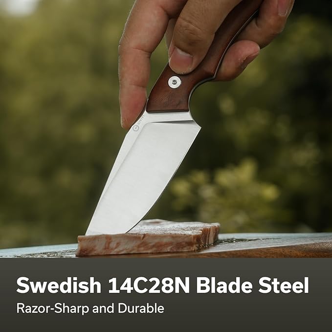 - Swedish 14C28N Blade: Features a 3.63" clip-point fixed blade crafted from 14C28N stainless steel, delivering excellent sharpness and corrosion resistance