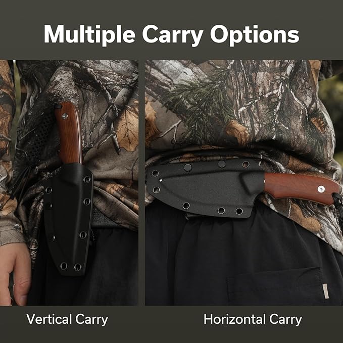 - Multiple Carry Options: Includes kydex sheath with adjustable T-clip, it allows vertical/ horizontal attachment to belts or backpacks
