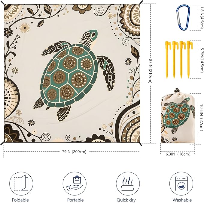 - 【Outside Beach Blanket】1 * Sand Proof Beach Mat;4 * Durable ABS Anchors Stakes; 1* Carabiner; 1 * Carry Bag.
