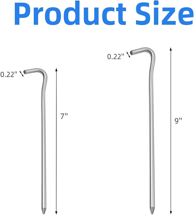 - Quality Material: Our tent stakes are made from high-quality metal with a 0.22"/5.5mm diameter, ensuring sturdiness during use.