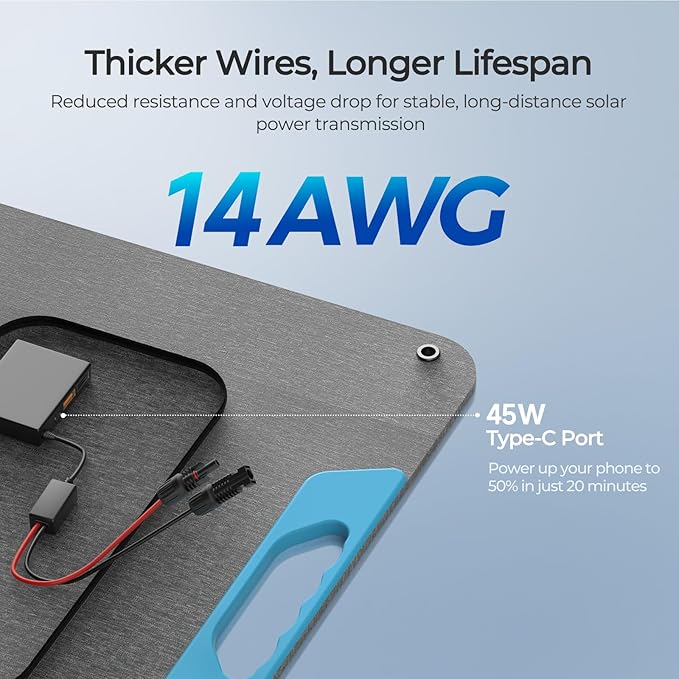 - [Versatile Off-Grid Power] Charge 3 devices simultaneously with 1 USB-C PD (45W max) and 2 USB-A ports (18W & 15W), perfect for smartphones, tablets, laptops and cameras. Renogy 200 watt portable solar panel also comes with MC4 output to easily charge your portable power station or 12V battery system (works with AGM, LiFePO4 and deep cycle). Get reliable power anywhere - ideal for RVs, SUVs, marine, trailers, pickup trucks, 4x4 off-road vehicles, camping, vans, blackouts and emergency backup.