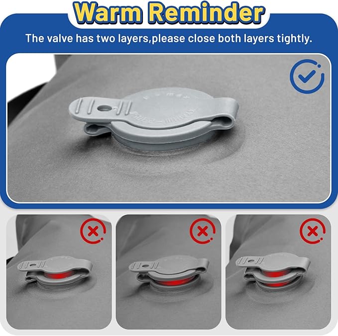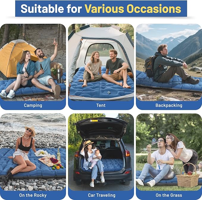 - Correctly Fast Inflat: Our inflatable sleeping pad has a built-in foot pump. Place the camping cots for adults, tightly close the 2-layer air valve on the back of the pillow without sponge, then open the air valve with sponge at the end, step on the valve with one foot, continuously press and lift the foot to allow air to enter the sleeping pad. After completion, tightly close the 2-layer valve, and you will get an ultra thick and comfortable camping mattress.