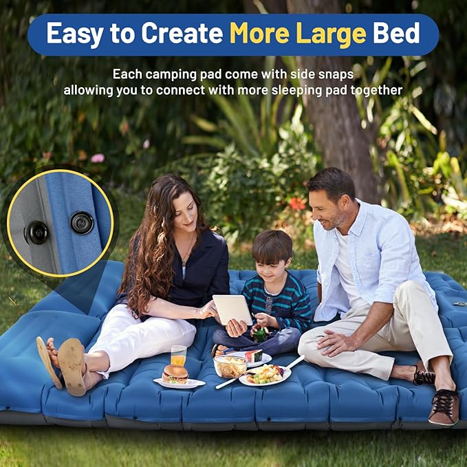 - Enjoy Upgrading Double Sleeping Pad:Our exped sleeping pad has a connecting buckle on the side, which allows you to easily connect another one to make a double bed or larger sleeping mat, making you sleep more comfortably. It is perfect for camping with family and friends and is a great gift for friends or family. If you have any problems with the backpacking sleeping pad, please feel free to contact us. Our professional customer service will make every effort to ensure your satisfaction.