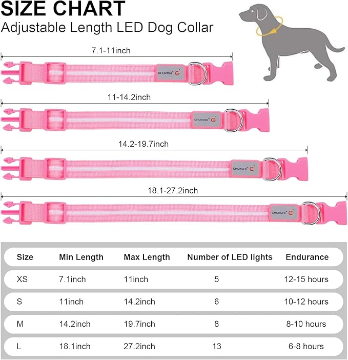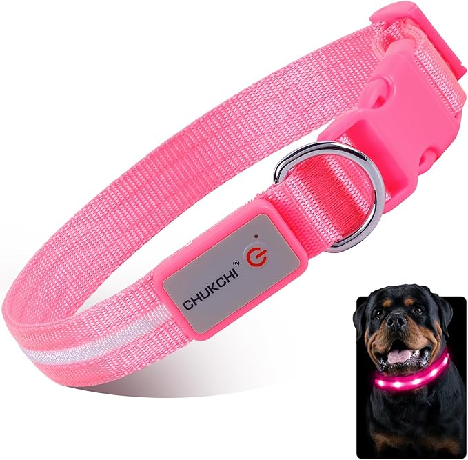 CHUKCHI LED Dog Collar Rechargeable,Waterproof Flashing Collar,Light Up Glow Collar, Adjustable Soft Safety Light Up for Small Medium Large Dogs Walking Camping at Night (Pink-L)