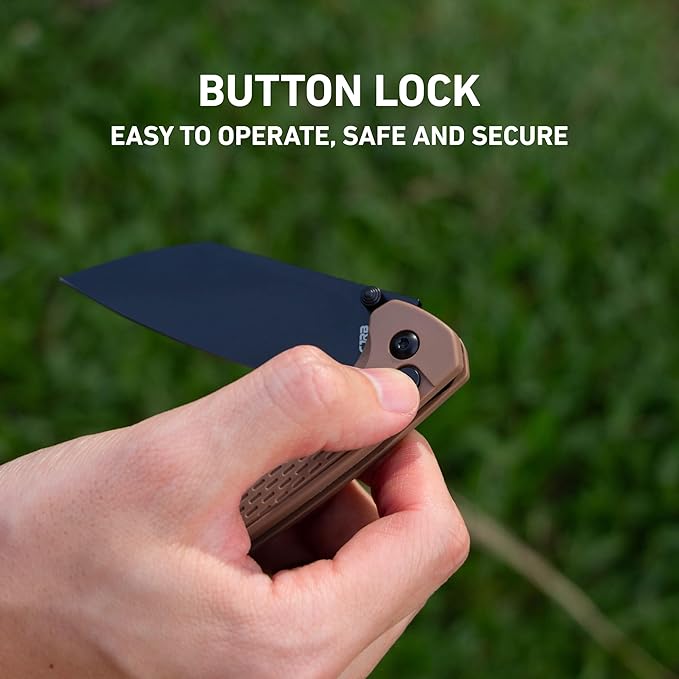 - Effortless Opening: The Pyrite-Light folding knife features a button lock mechanism, ensuring that the blade remains securely locked during use. The ceramic ball-bearing pivot construction and thumb stud design ensures swift one-handed flip deployment and smooth closure