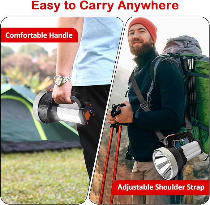 - Portable Hand Camping Light: Lightweight, large and comfortable handle are design for easy carrying and hanging, whether you are exploring the outdoors, camping at night, or dealing with a sudden power outage, our flashlights can meet your lighting needs.