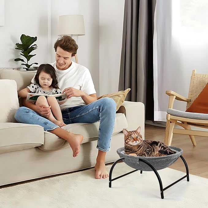 - 【Easy to assemble & clean】With its simple structure and intuitive instructions, you can set up this raised cat cot in just a few steps. The cat hammock also features a velcro design, which allows it to be removed for machine or hand washing.