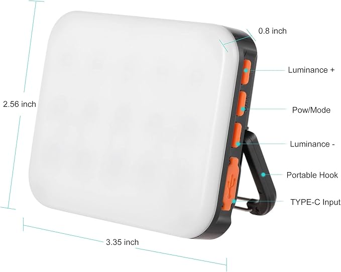 - This tent lights for camping is very convenient to carry, palm-sized, and comes with a small storage bag, only 3.35 x 2.56 x 0.8 inches and weighs only 0.24 lb, making it very light and easy to hang on a backpack for carrying around. It can also be placed in a pocket