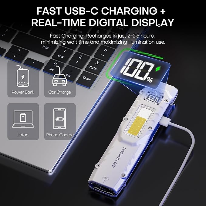 - 【USB-C Fast Charging + Digital Power Display】 This flashlight rechargeable supports USB-C fast charging via laptops, power banks, or wall adapters—perfect for EDC or emergency use. The integrated digital power display shows real-time battery percentage, so you always know how much power remains. No guesswork, no surprises—your tactical flashlight stays mission-ready, your pocket flashlight stays reliable.