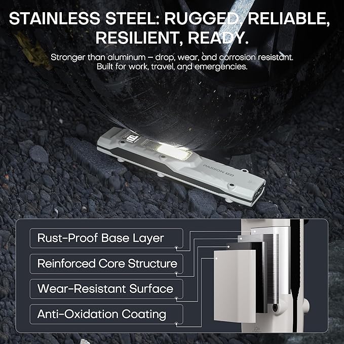 - 【Stainless Steel Durability + Lifetime Warranty 】 Built from heavy-duty stainless steel, this high lumens flashlight resists rust, scratches, and impact drops up to 6.5 ft. With IPX5 waterproofing, it performs in rain, mud, or tough job sites—ideal for construction, repairs, camping, or emergencies. A durable EDC flashlight backed by a lifetime warranty, giving you long-term reliability and confidence in every use.