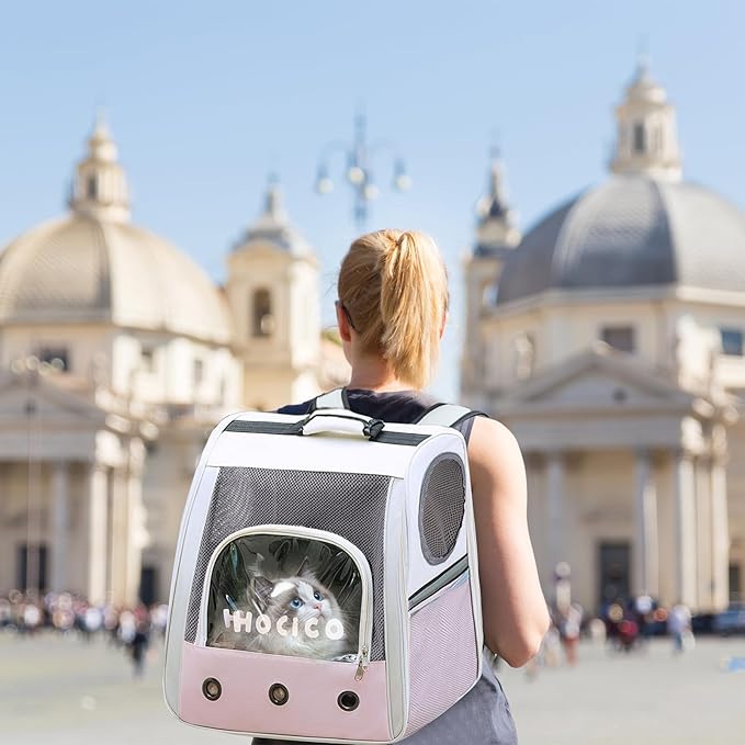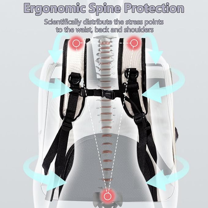 - Ergonomic design: Adjustable wide shoulder straps and widened pet backpack handles, and the breathable pad on the back of the backpack help reduce the burden on your shoulders and back. This small dog backpack is equipped with a chest buckle for extra support. With this lightweight pet bag, you can take your pet anywhere and anytime for a wonderful and happy journey.