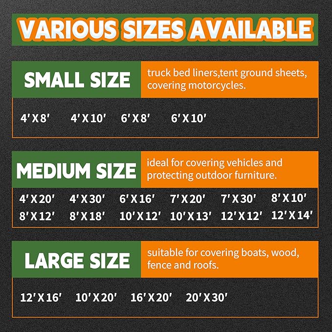 - 【UV RESISTANT TARP+WEATHER PROOF】The Striped Tarp Is Added With Sun Protection Factors To Prevent The Tarpaulin From Tearing And Fading.It Has 10 Mils Thickness And It Fits For What You Wanted It To Do, Mother Nature Can Be Unpredictable,But You Can Be Prepared.If You Are Hesitating About The Durability Of The Tarp,Please Give Us A Chance To Prove That This Tarps Is A Good Choice.