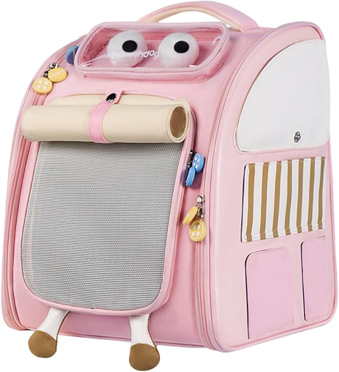 Pet Carrier Backpack, Dog Backpack with Waterproof Pu Leather, Cat Backpack with Breathable Mesh, Pet Bag Suitable for Climbing, Hiking, Traveling(Pink)