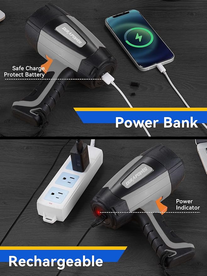 Durapower Rechargeable Spotlight, 500 Lumens LED Spotlight Flashlight, IPX2 Waterproof Handheld Spot Light for Indoor Outdoor Farm Camping Emergency (Grey)
