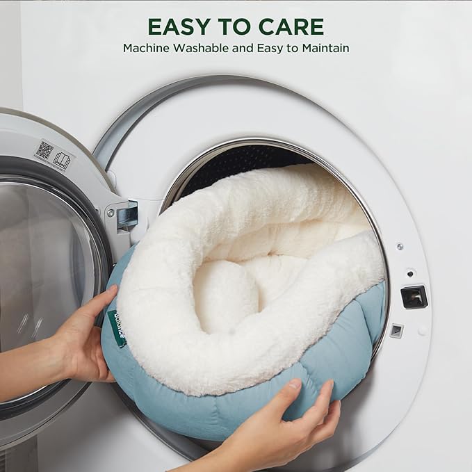 - Supportive sides and security: The round design of the washable dog bed allows pets to curl up, while the raised sides provide head and neck support and create a sense of security