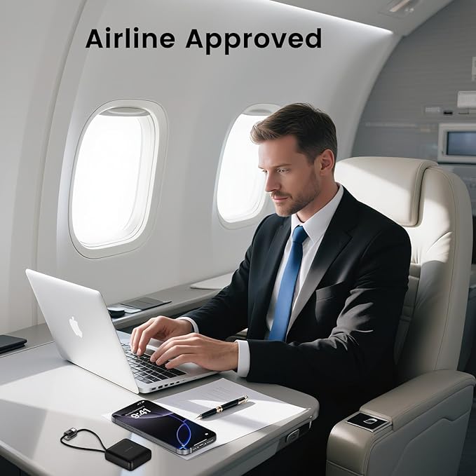 - 【Built in Cables,Charge 3 Devices】This slim portable charger integrates two highly durable internal cables and 1 Type-C input/output port, allowing it to efficiently charge three devices simultaneously. It is perfectly compatible with iPhone 16/15/14/13 series, Samsung Galaxy S24, and Android devices, making it perfect for fast charging phones. The dual-cable design ensures portability while ensuring stable and reliable charging, eliminating the hassle of tangled cables.