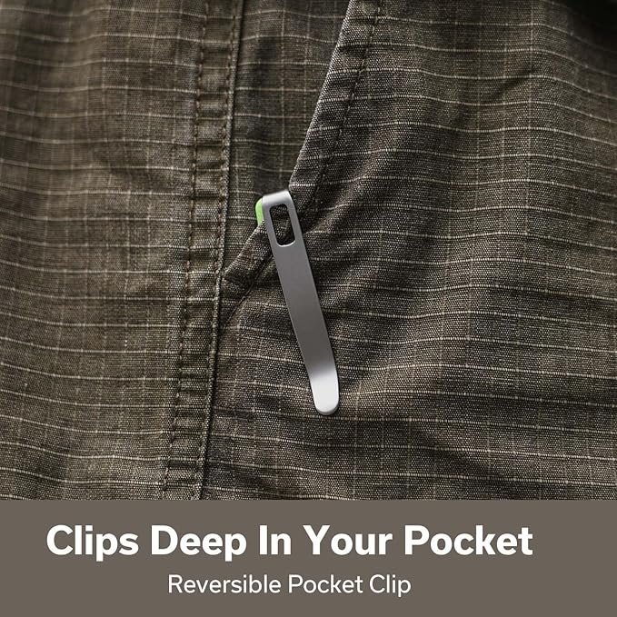 - Convenient Deep-Carry Pocket Clip: The reversible clip keeps your knife low-profile in your pocket while allowing quick access