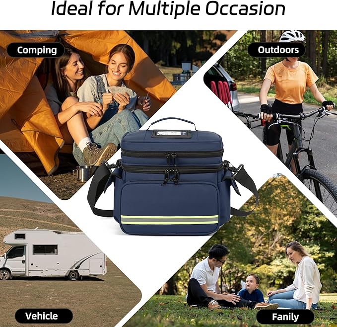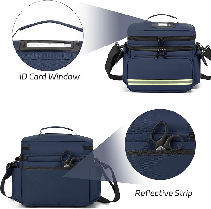 Double Layer First Aid Bag Medical Bag Empty Emergency First Responder Organizer for Nurses,Home Health Care, EMT BLUE
