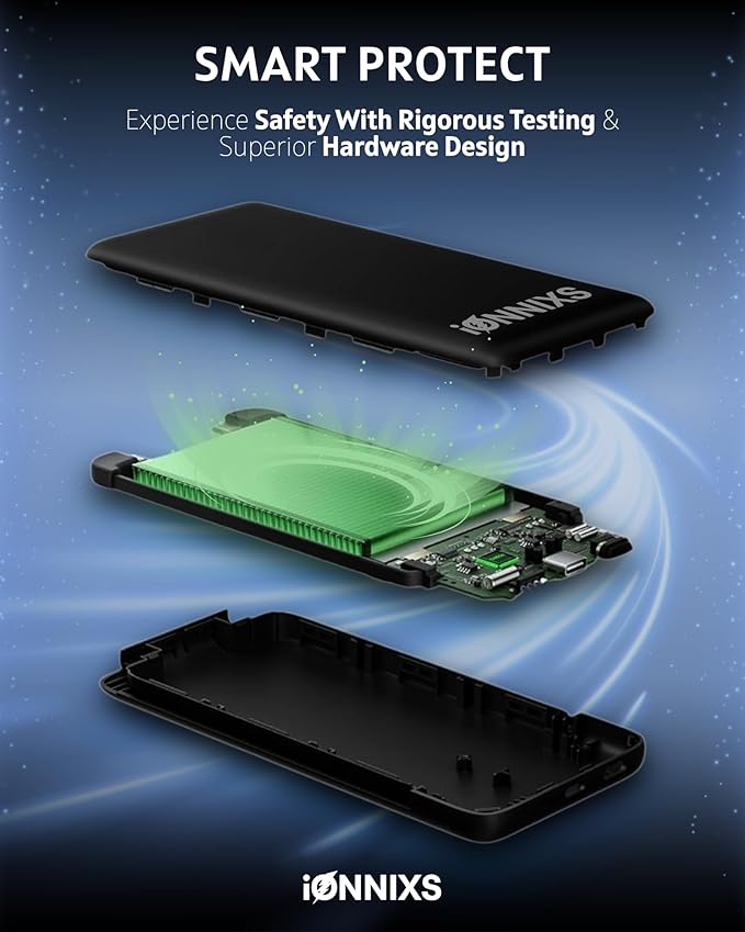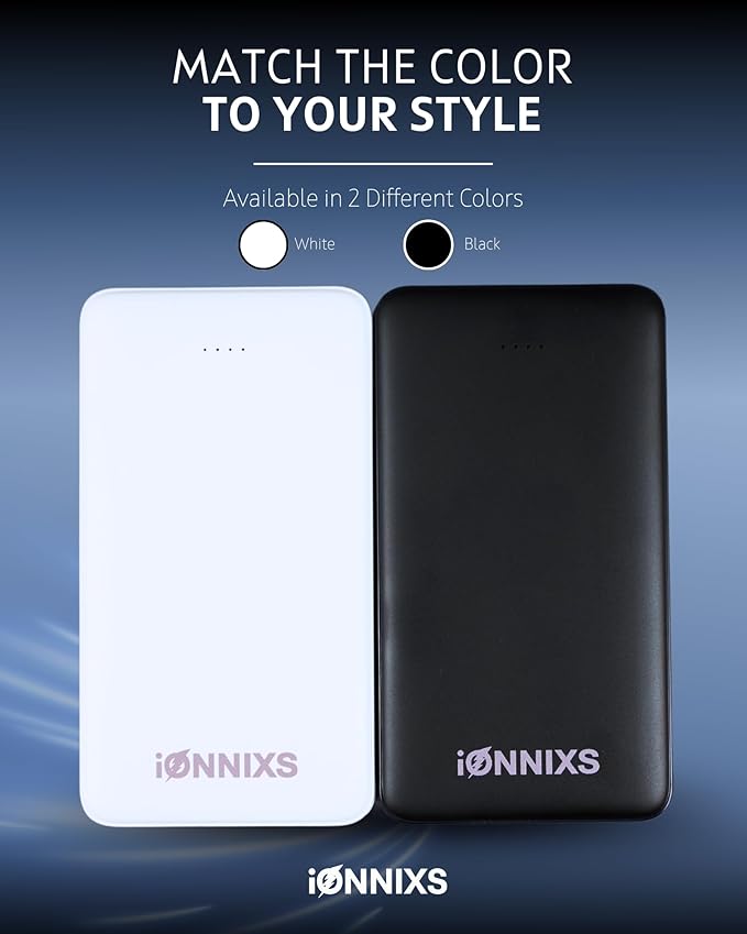 - Pocket-Sized, Travel-Ready Design: The ultra-slim body of the IONNIXS portable phone charger fits easily into your pocket, laptop bag, handbag, or carry-on. It's the ideal power option for professionals, students, and travelers who appreciate a sleek, minimalist design.