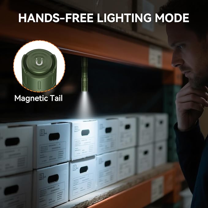 - TACTICAL ONE-CLICK SWITCHING:Featuring a tail switch design, the S21X pocket flashlight can be turned on instantly with a single button. It offers five brightness modes(moonlight/low/medium/high/flashlight) that can be easily switched between. The memory function automatically saves your preferred brightness setting, allowing you to use your favorite mode immediately upon turning on the flashlight.